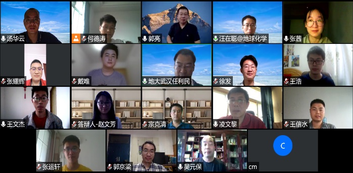 近日,地球化学系组织了一次别开生面的硕士论文网络集中答辩,19位硕士生分两个专题会场向答辩委员会宣读了自己的论文,并接受了评委老师的学术质疑。经过认真评议问询和充分讨论,答辩委员会以无记名方式一致通过了19位同学的论文答辩。硕士生进行论文集中答辩,是学院向研究生培养要质量的重要改革举措之一,已持续实施多年。仅地球化学系此次答辩的19位硕士研究生,就以第一作者发表T1论文4篇(含Nature Index论文1篇)、T2论文3篇、T4论文1篇,另有多位同学的论文工作创新明显,反映了地化系人才培养的突出成绩。答辩会议结束后,满怀着对学子们优异研学成绩的充分肯定和即将走向社会的依依不舍,地球化学系全体教师向同学们发出了充满深情的祝福和期望。