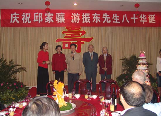 2007年11月9日,williamhill威廉希尔隆重举行邱家骧教授、游振东教授八十华诞庆祝会,校党委书记郝翔、副书记傅安洲、副校长欧阳建平及学校相关职能部门领导,岩矿系全体老师出席了会议。校领导作重要讲话,高度评价了二位教授为学校作出的贡献,庆祝会由地学院分党委书记赵俊明主持。