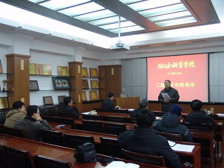 根据学校布署,2007年1月4日,地学院党委召开了2006年度二级领导班子民主考评会,会议由党委书记赵俊明主持,学院全体党政领导,各系系主任、书记,洪山区人大代表马振东教授出席会议。