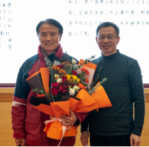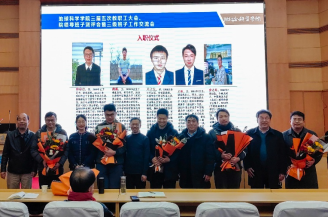 学院领导为荣休的龚一鸣教授(左)、新入职的五位老师献花(右)