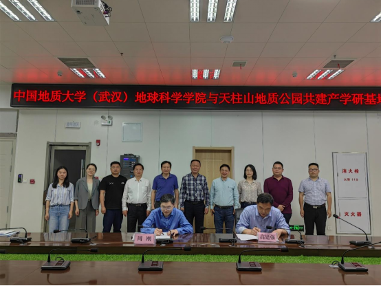 地球科学学院朱宗敏副院长介绍了学院地质学学科的发展状况和在产学研合作方面的建设情况,希望推荐毕业生来天柱山世界地质公园工作。