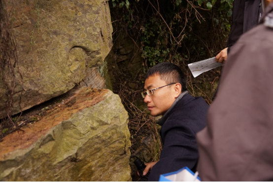 11月23日上午,在云南大学魏凡副研究员及中国前寒武系省级地质自然保护区管护局陈金龙局长、余波副局长、杨剑辉副局长等的陪同下,学院师生走进了云南省昆明市晋宁区昆阳街道梅树村昆阳磷矿采区,实地考察了震旦系——寒武系界线层型剖面(即“云南梅树村剖面”)。该剖面以其古生物化石的丰富性、保存完整度及研究深度著称。在这里,学院师生围绕磷块岩型磷矿成矿机理、震旦系——寒武系界线地层岩性特征、形成历史及化石种类展开了热烈的讨论和交流。