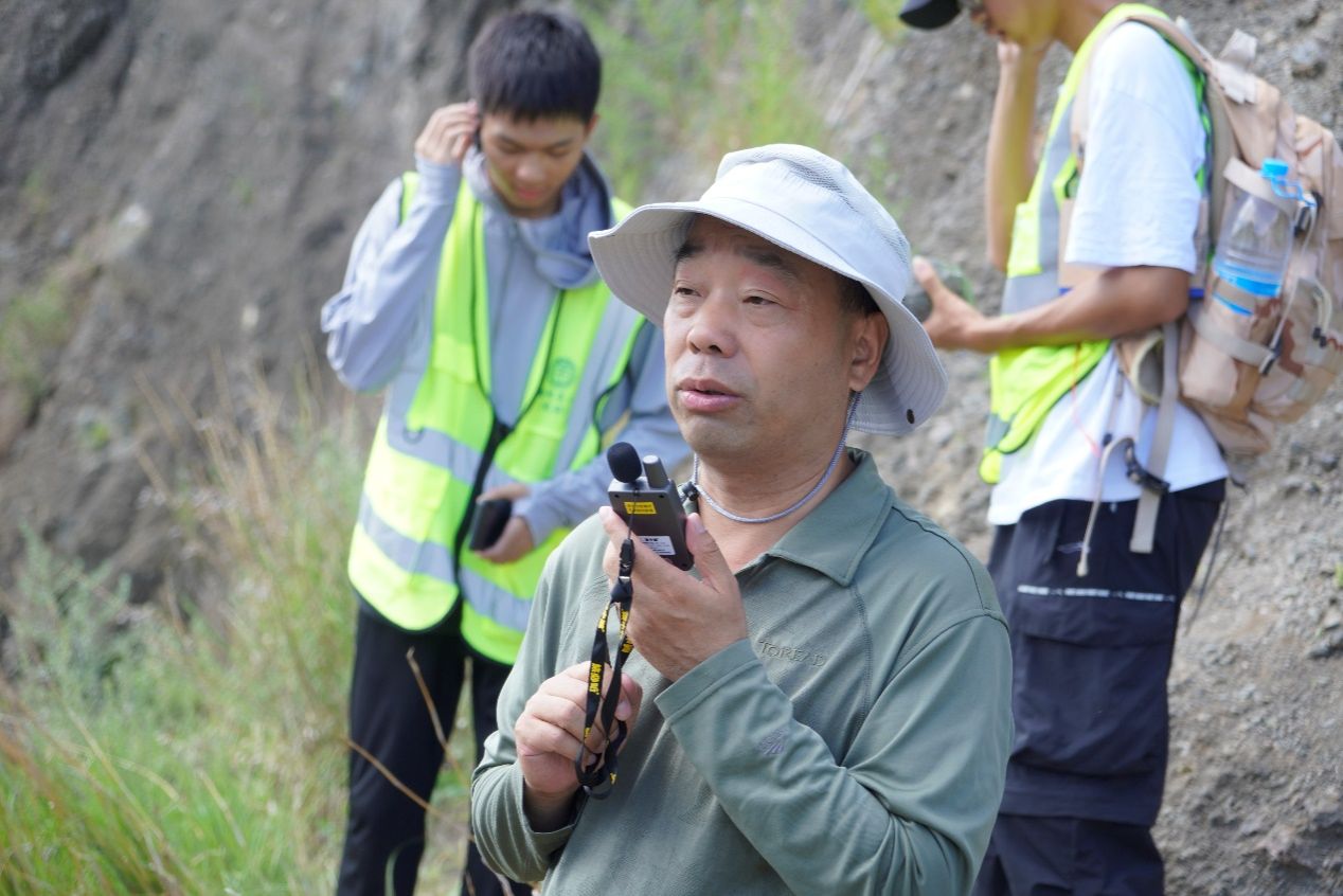 25日上午,院领导全程参与福山马山火山实习路线,指导野外地质教学。院长吴元保通过解析玄武岩的矿物组成、构造特征及橄榄岩包体等关键要素,揭示岩浆源区性质差异,引导学生思考地幔包体对深部地幔组成的指示意义,现场回答同学们的提问。他勉励同学们:“普通人观山水只见风景,地质人读山水需解其韵——要透过现象洞察地球演化的密码,领悟地质现象背后的科学真谛。”