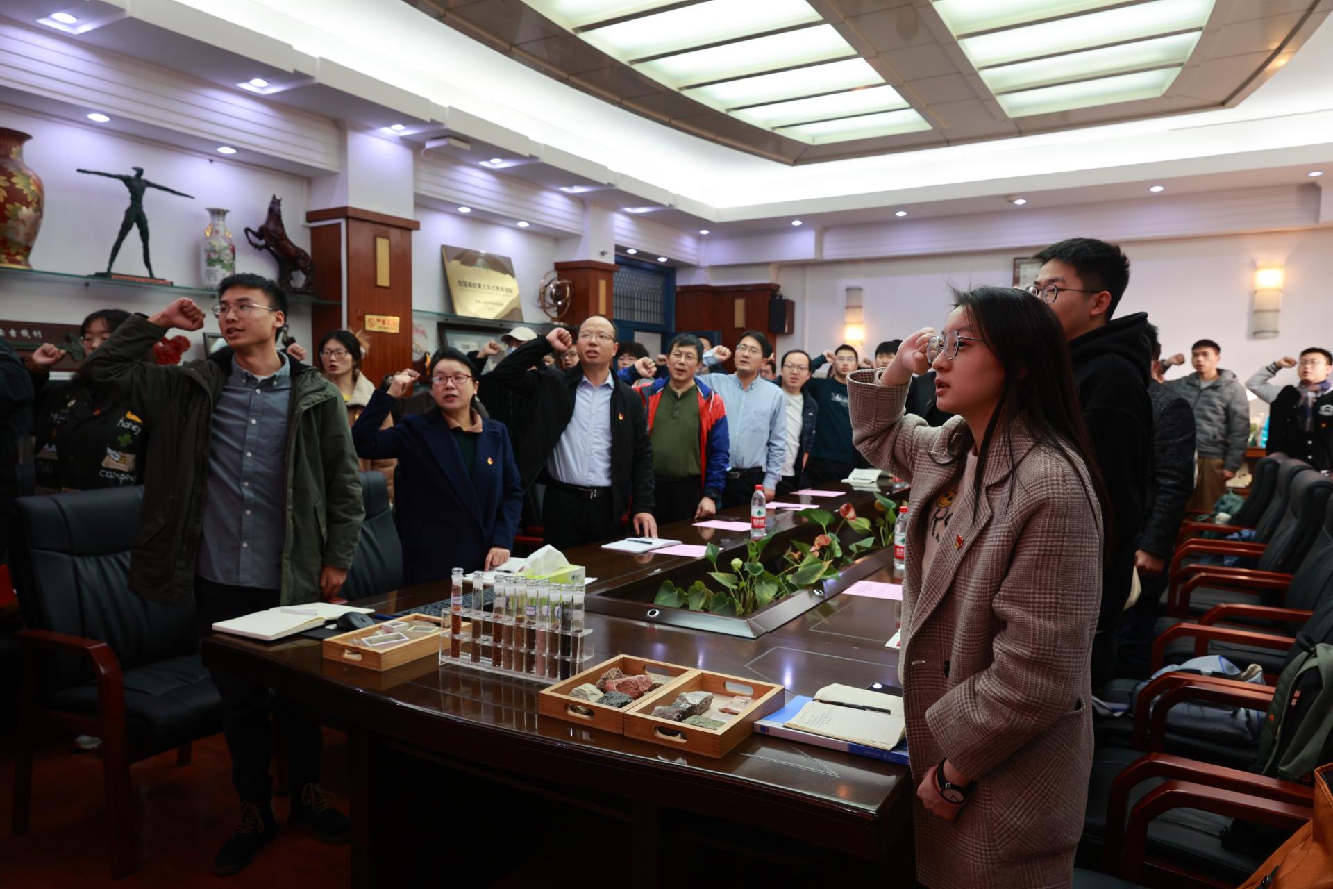 地质学国家基地班本科生党支部胡楚玉说,作为新一代地质青年,我们要以“请党放心、强国有我”的使命担当,书写无愧于时代的青春华章。
