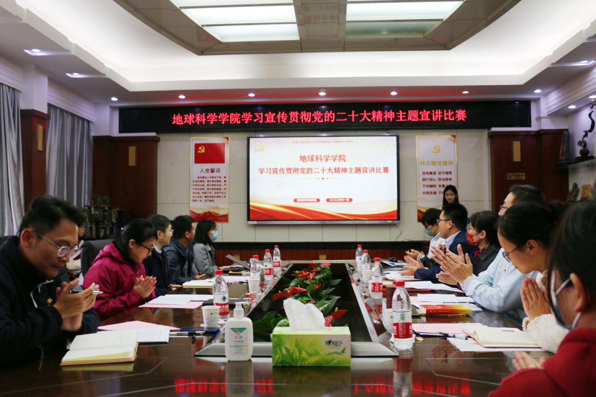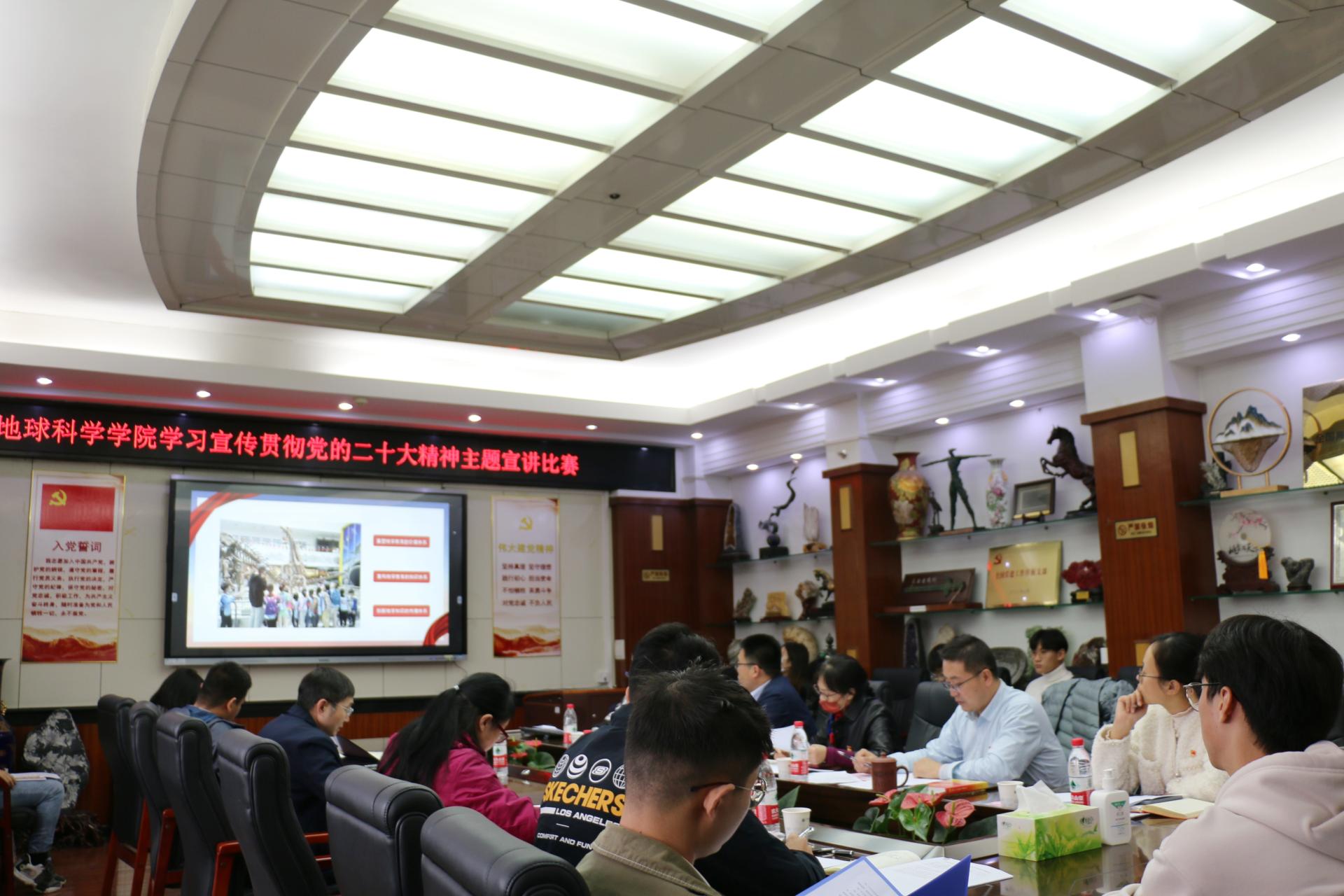 williamhill威廉希尔党委书记周刚、地球物质科学系党支部书记王连训、构造地质与地球动力学系党支部书记续海金、地球生物学系党支部书记杨江海、地球化学系党支部书记谢淑云、院直党支部书记林文姣以及辅导员滕笑丽、秦傲担任此次比赛评委。学院本研学生党支部书记、委员共25人参赛。